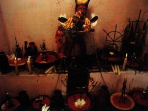 Maria Quiteira acepta sus ofrendas en los sitios donde hay un cruce de caminos. Toma champaña, le gusta los cigarros largos, perfumes, velas rojas y telas rojas y negras.